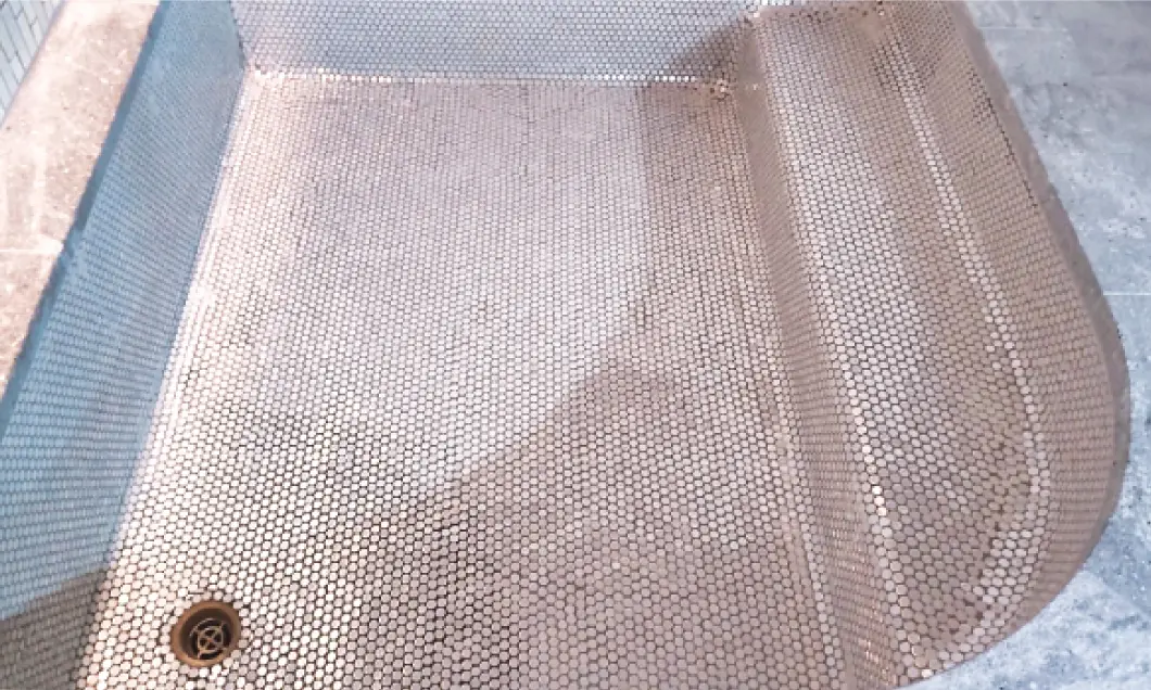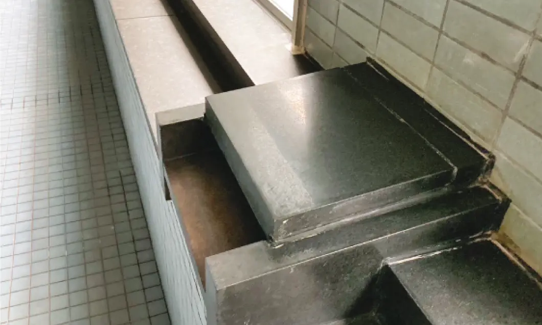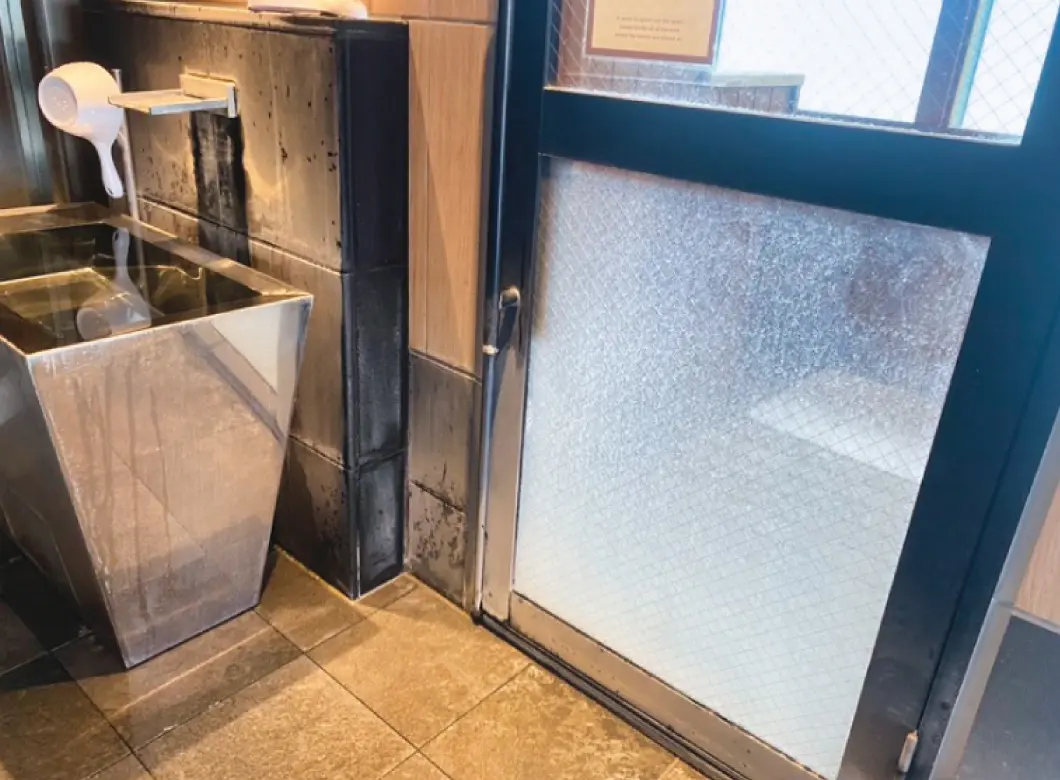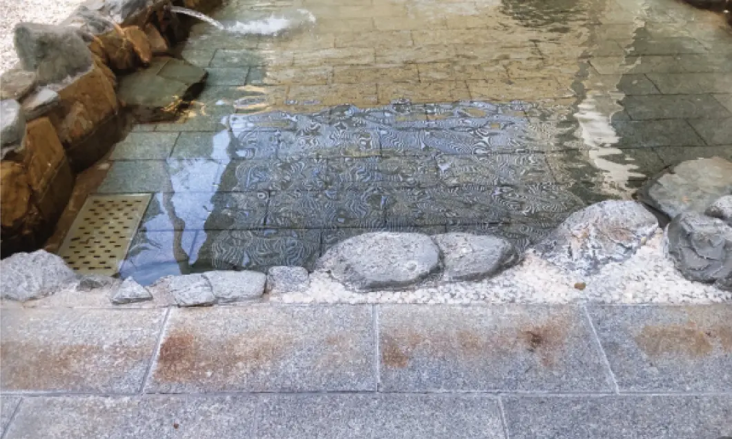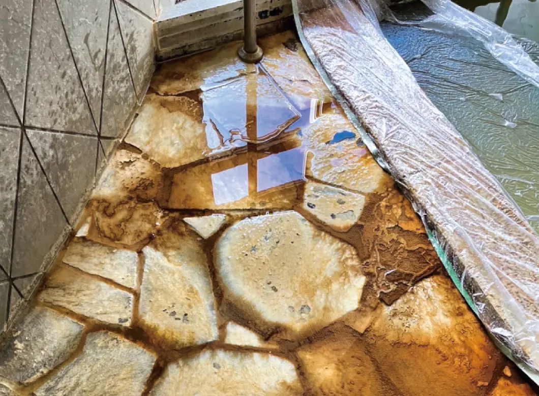 汚れた床面は、美観や清潔感を損なうことはもちろんですが、ヌメリがある床石は、滑りやすく危険です。綺麗になった浴場で安心して快適に入浴いただけます。