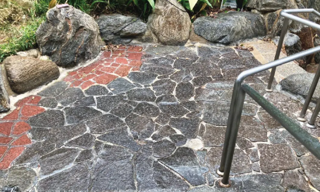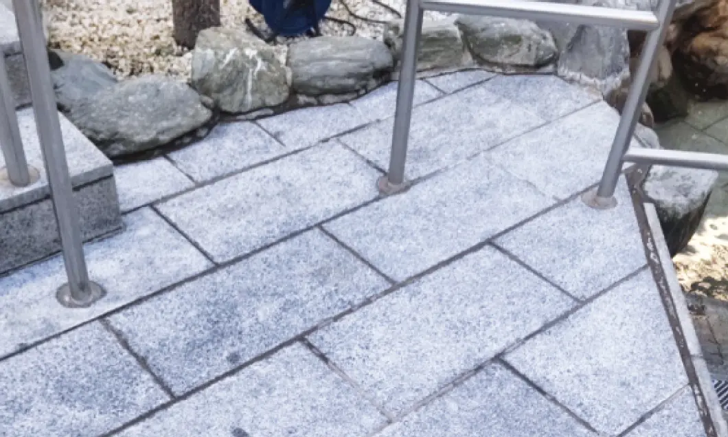 プロの技術で、温泉成分が原因となっている頑固な汚れを取り除きます。環境に配慮し、極力洗剤を使用せず施工します。また、頑固な汚れには石材を痛めない専用の洗剤を使用し、安全な工法・工具で施工します。