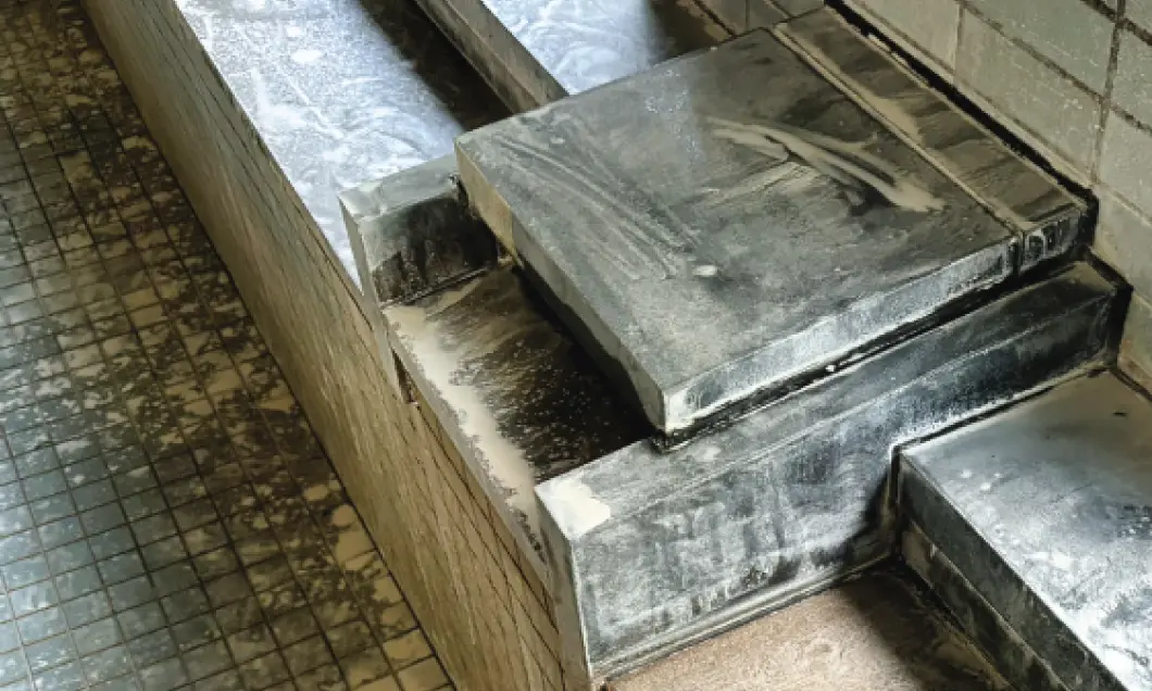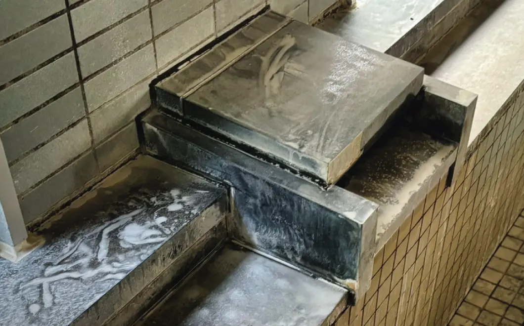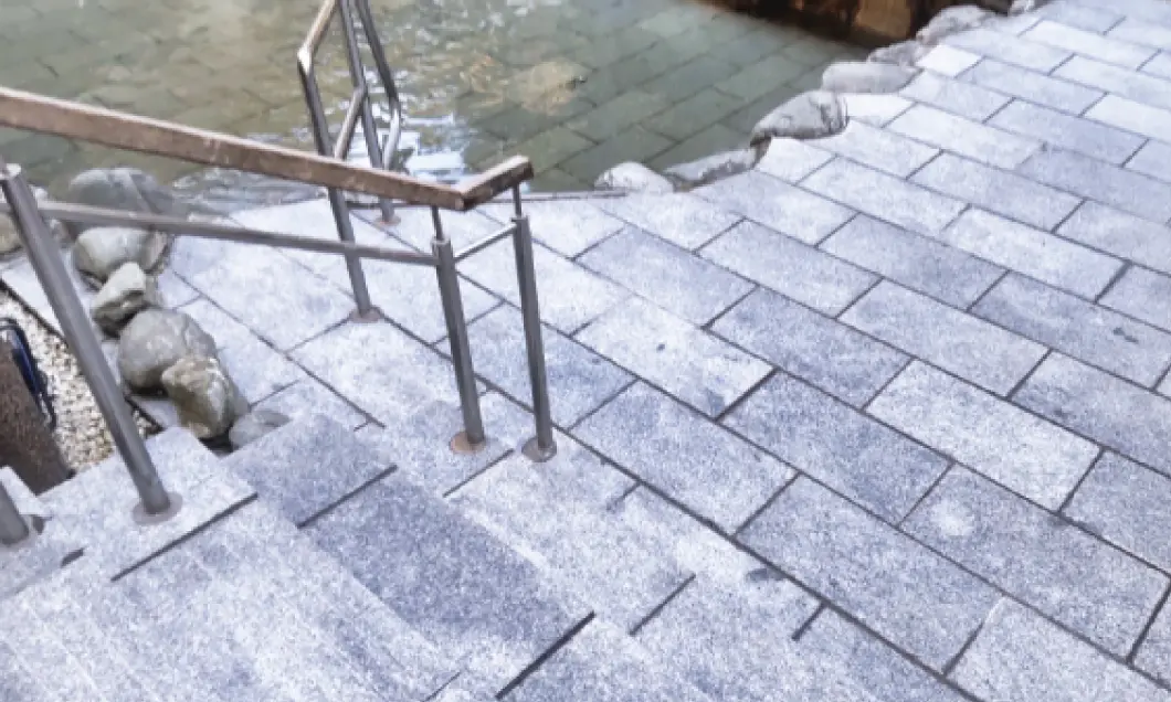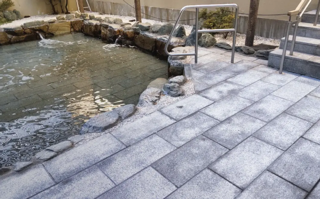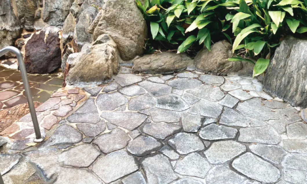 露天風呂などの経年劣化が進みやすい屋外の入浴施設もお任せください。泉質に合わせた洗剤や技術で、長年に渡って蓄積し、石のようになったスケールもしっかりと除去します。シミ・汚れやサビなどで変色してしまった石材も適切なメンテナンスで徹底洗浄いたします。