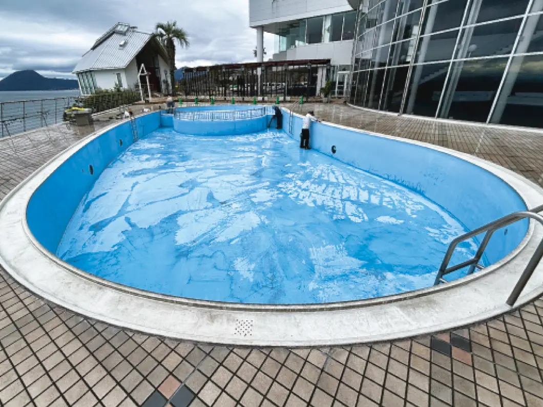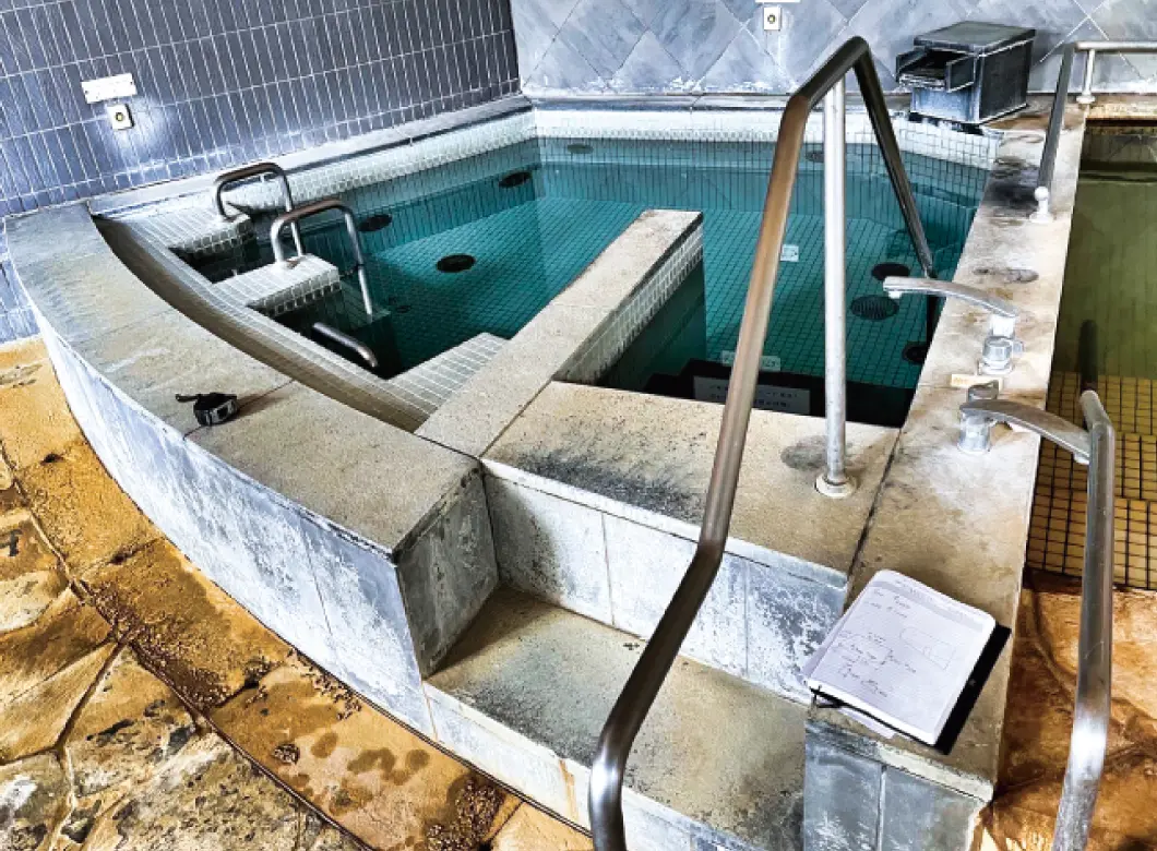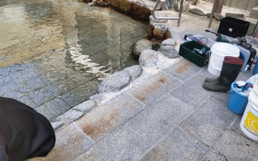 屋外温浴施設の清掃